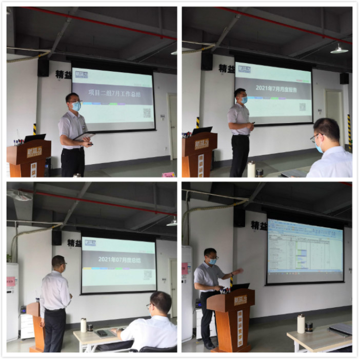 新益為公司7月份項目月度會議在2021年7月31號如期開展,伴隨著重慶火熱的天氣,結合目前的疫情防控政策,所有出席會議的成員全部戴上口罩,一人一桌,分散就坐。